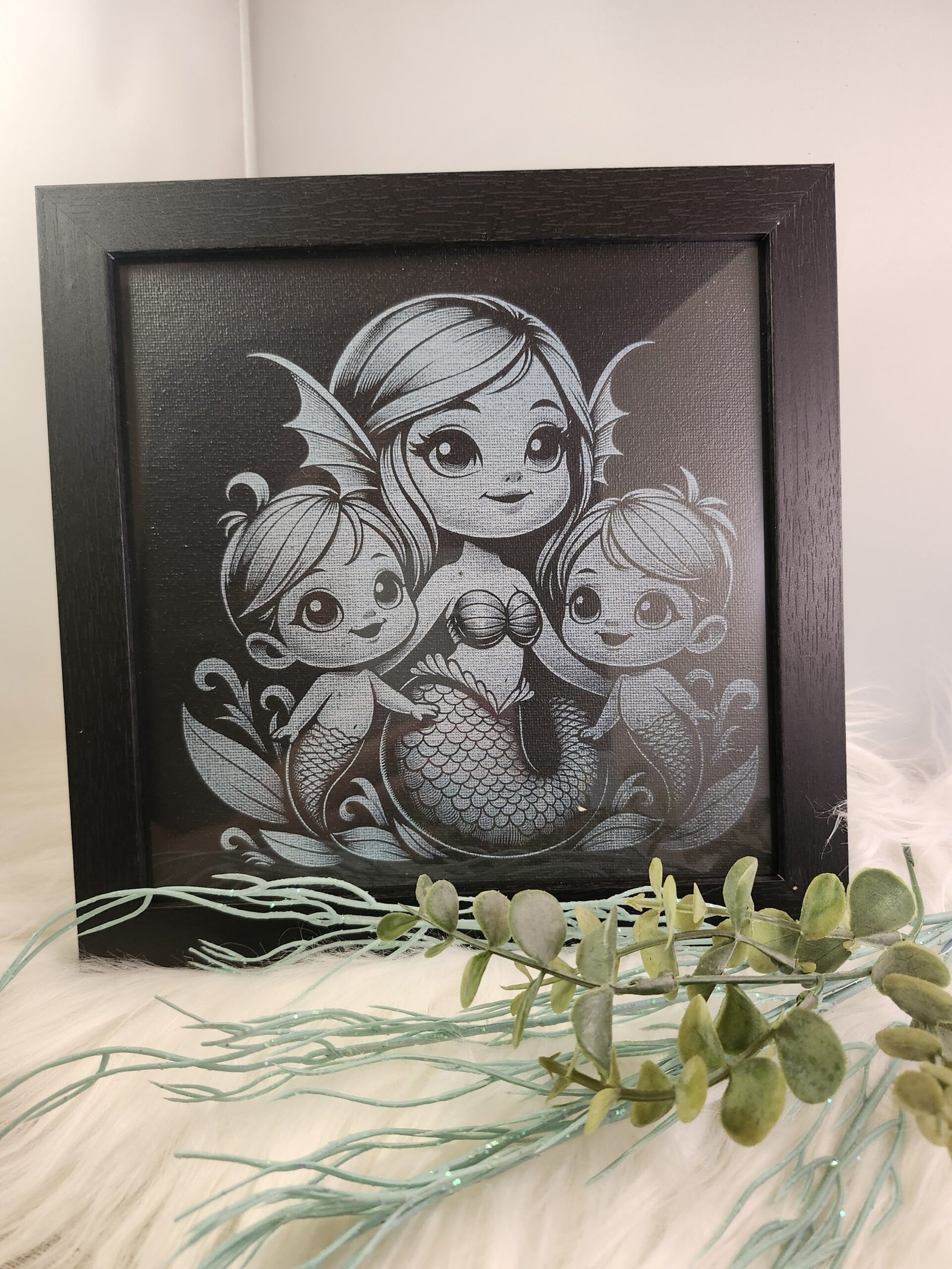 Framed in a sleek 8×8 black frame, this piece is ready to hang or display on a tabletop. Perfect for beach house décor, ocean lovers, fantasy art fans, or mermaid collectors, this engraved wall art adds whimsical charm and coastal style to any space.