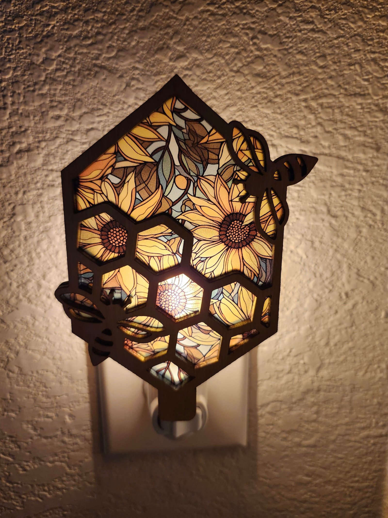 Add a touch of natural charm to your home with this Bee Honeycomb Nightlight, handcrafted with precision from laser-cut wood and a transparent acrylic panel. Its intricate honeycomb design brings warmth and whimsy to any space, while the soft glow from the energy-efficient C7 LED bulb creates a cozy ambiance.
