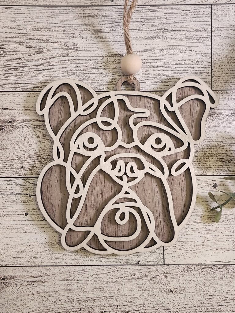 Celebrate your love for Bulldogs with this beautifully handcrafted laser-cut Bulldog dog ornament, made from premium-quality wood with an intricate, detailed design. Measuring approximately 4″ to 5″, this charming ornament perfectly captures the lovable personality and unique features of the Bulldog breed, making it a perfect keepsake for dog lovers.