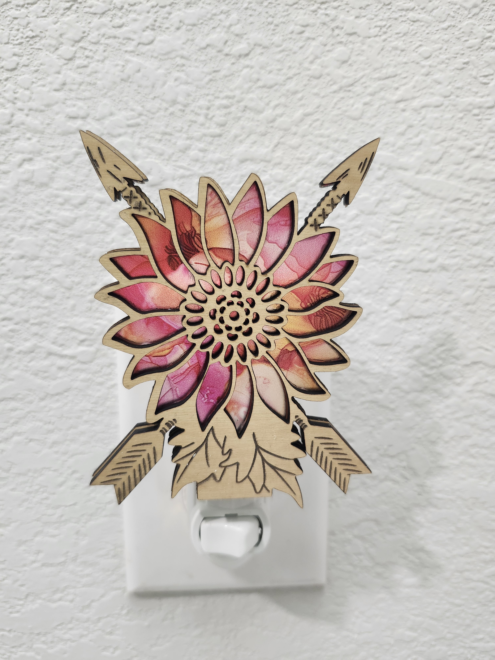Brighten your space with this charming Flower nightlight, beautifully laser cut and engraved with intricate floral details. Measuring 4″ to 4½”, this handcrafted nightlight adds elegance and warmth to any room, making it the perfect accent for your home décor or a thoughtful gift for flower lovers.