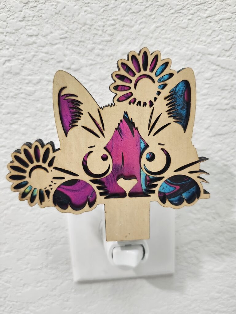 Add a touch of feline charm to your home with this Kitty Cat Nightlight, beautifully laser cut adorable cat. Measuring 4″ to 4½”, this handcrafted nightlight brings a soft, comforting glow that’s perfect for bedrooms, nurseries, bathrooms, or hallways.
