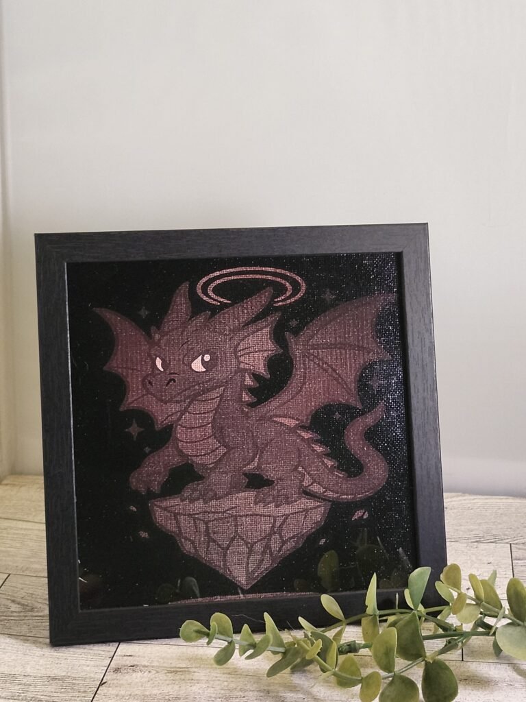 Add a touch of fantasy and charm to your home décor with this 6×6 black frame laser-engraved Little Red Dragon wall art. Expertly crafted with precision, the detailed engraving brings this mythical creature to life, making it the perfect statement piece for any room. The sleek black frame enhances the design, giving it a polished, modern finish while highlighting the unique handcrafted artistry.