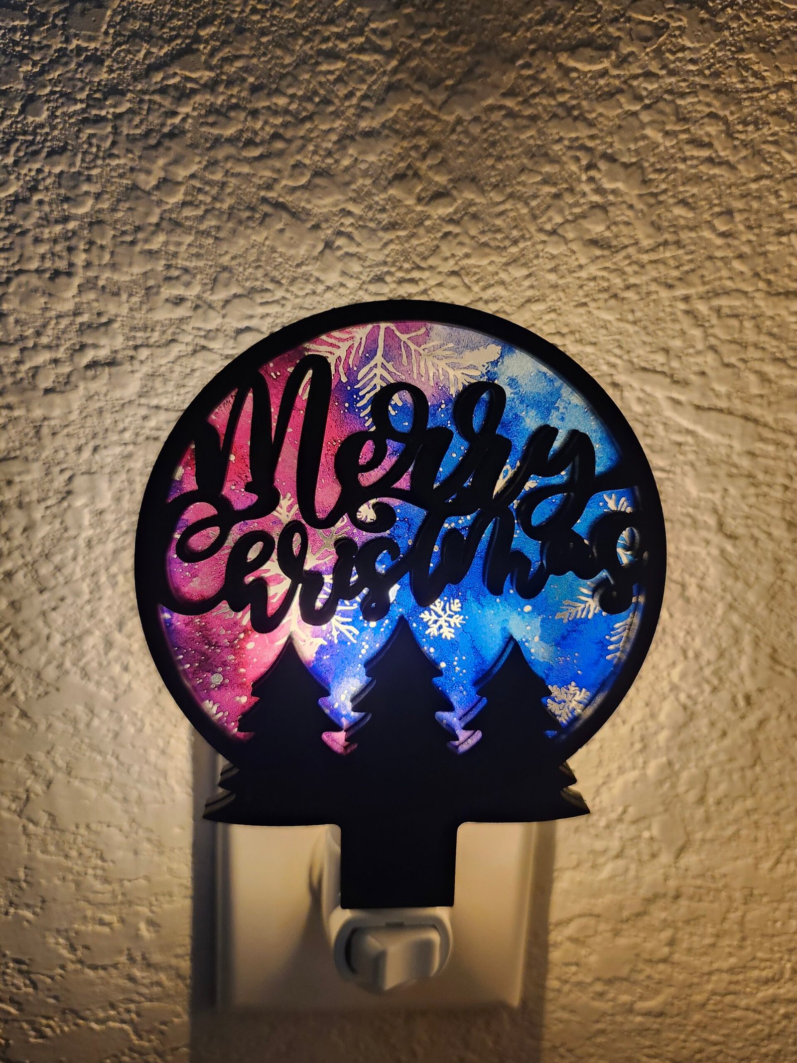 Add a warm holiday glow to your home with this Merry Christmas Nightlight, beautifully laser cut with festive detail. Measuring 4″ to 4½”, this handcrafted nightlight spreads cozy Christmas cheer and looks perfect in hallways, bedrooms, bathrooms, or holiday displays.