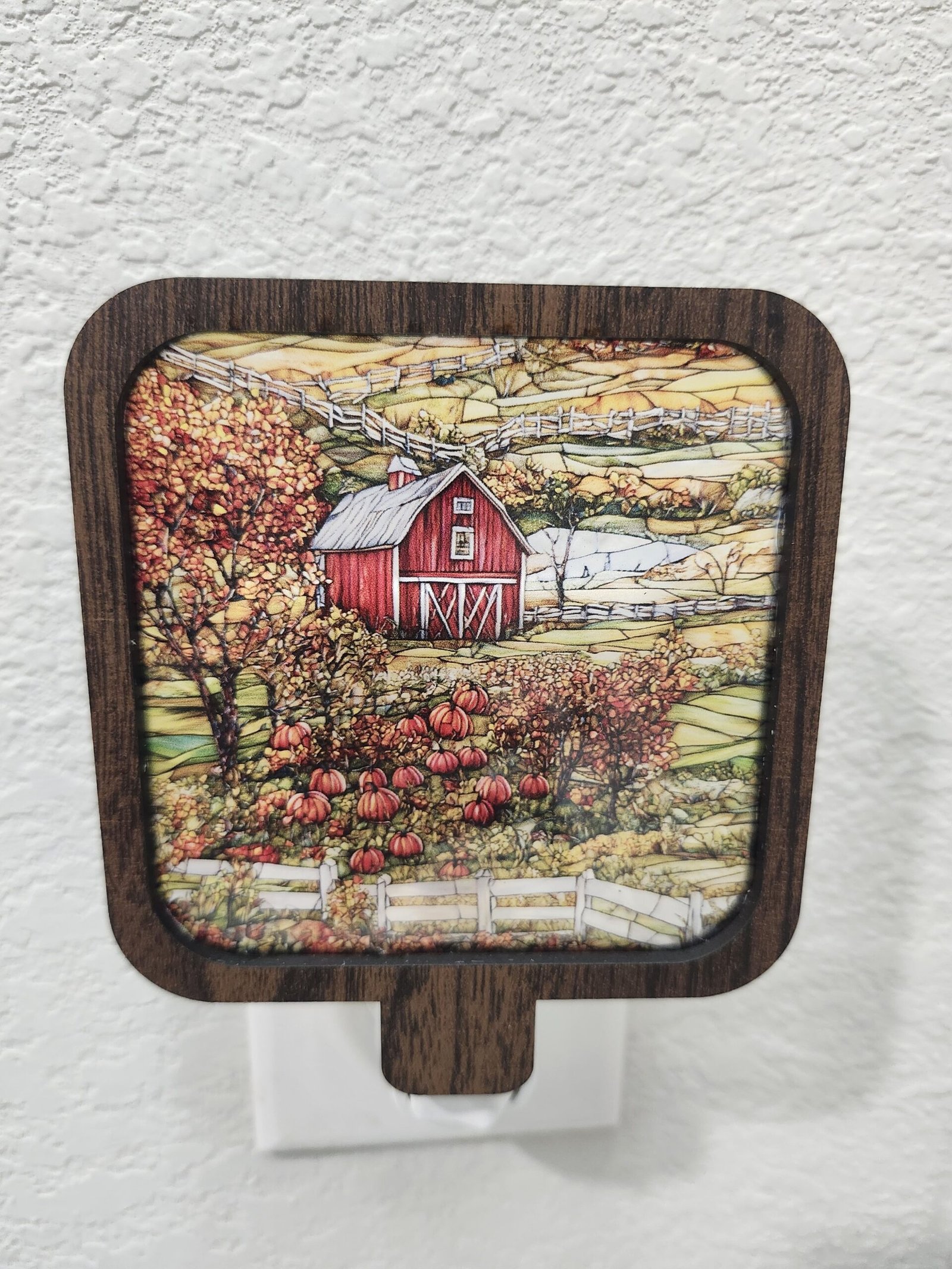 Bring cozy farmhouse charm into your home with this Red Barn Fall Scene nightlight, beautifully laser cut for stunning seasonal detail. Measuring 4″ to 4½”, this handcrafted nightlight captures the warmth and beauty of the countryside in autumn, making it the perfect accent for your fall décor or Thanksgiving decorations.